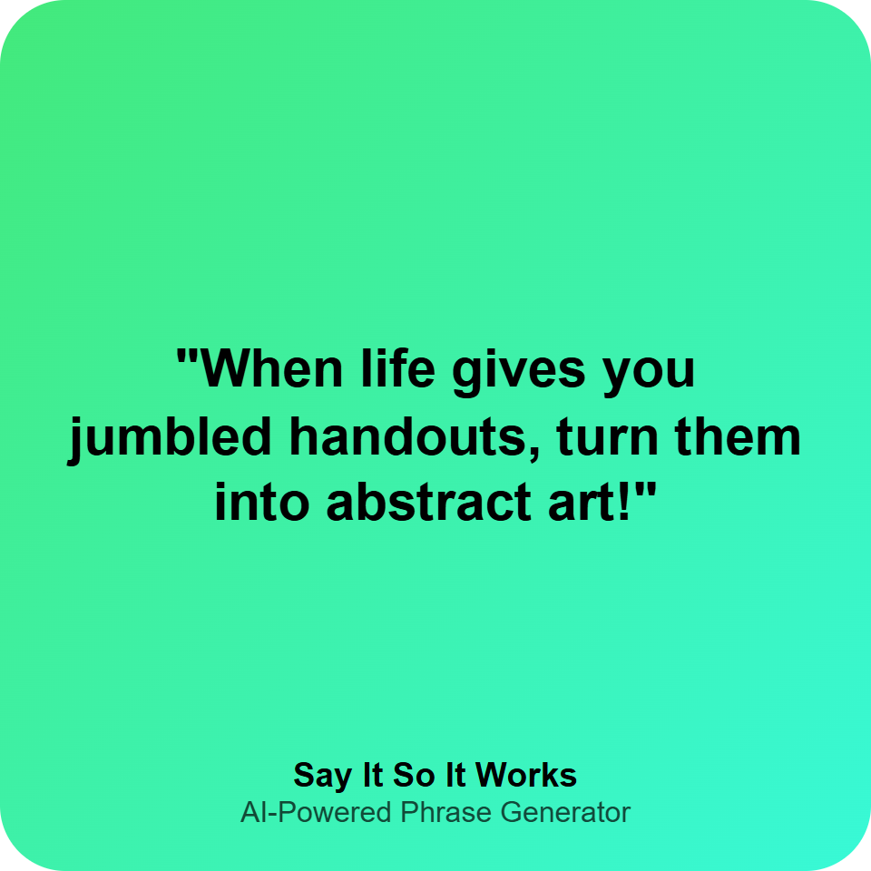 "When life gives you jumbled handouts, turn them into abstract art!"