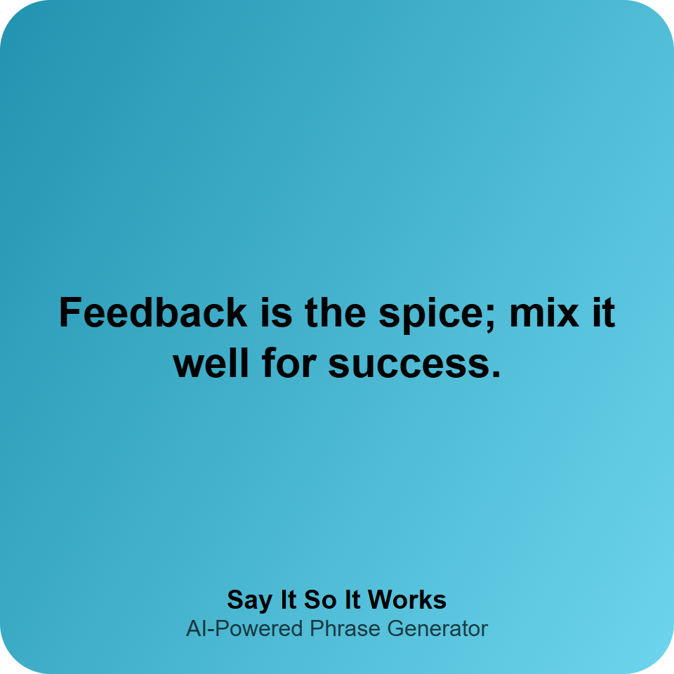 Feedback is the spice; mix it well for success.