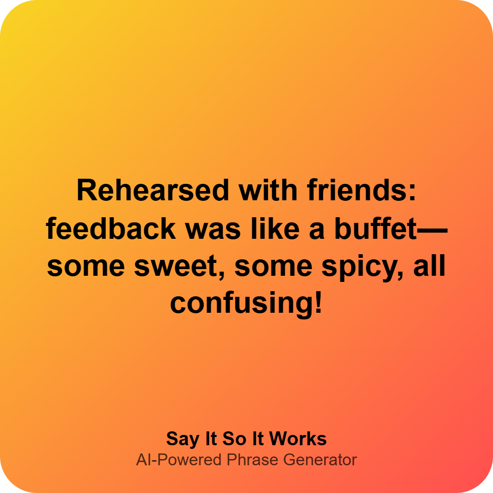 Rehearsed with friends: feedback was like a buffet—some sweet, some spicy, all confusing!