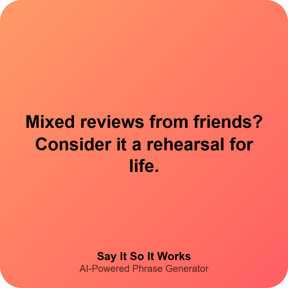 Mixed reviews from friends? Consider it a rehearsal for life.