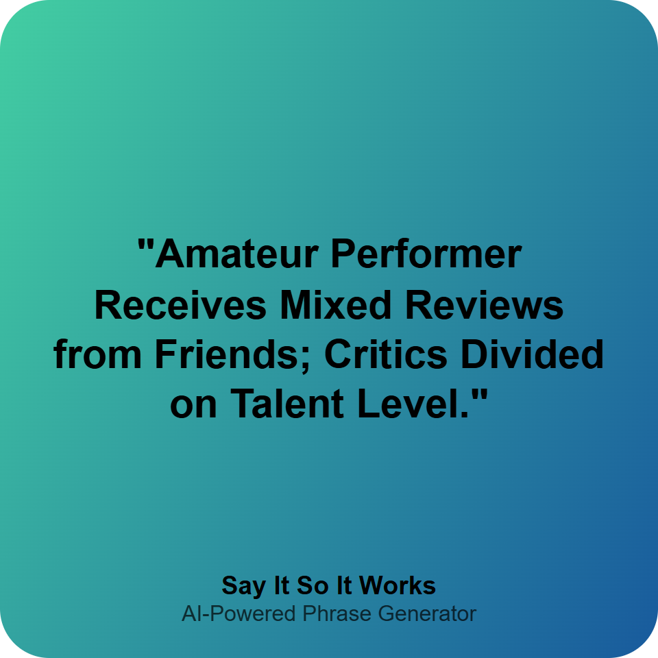 "Amateur Performer Receives Mixed Reviews from Friends; Critics Divided on Talent Level."