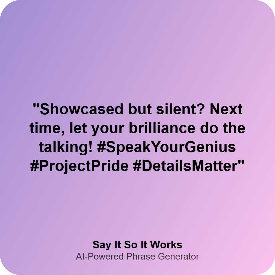 "Showcased but silent? Next time, let your brilliance do the talking! #SpeakYourGenius #ProjectPride #DetailsMatter"