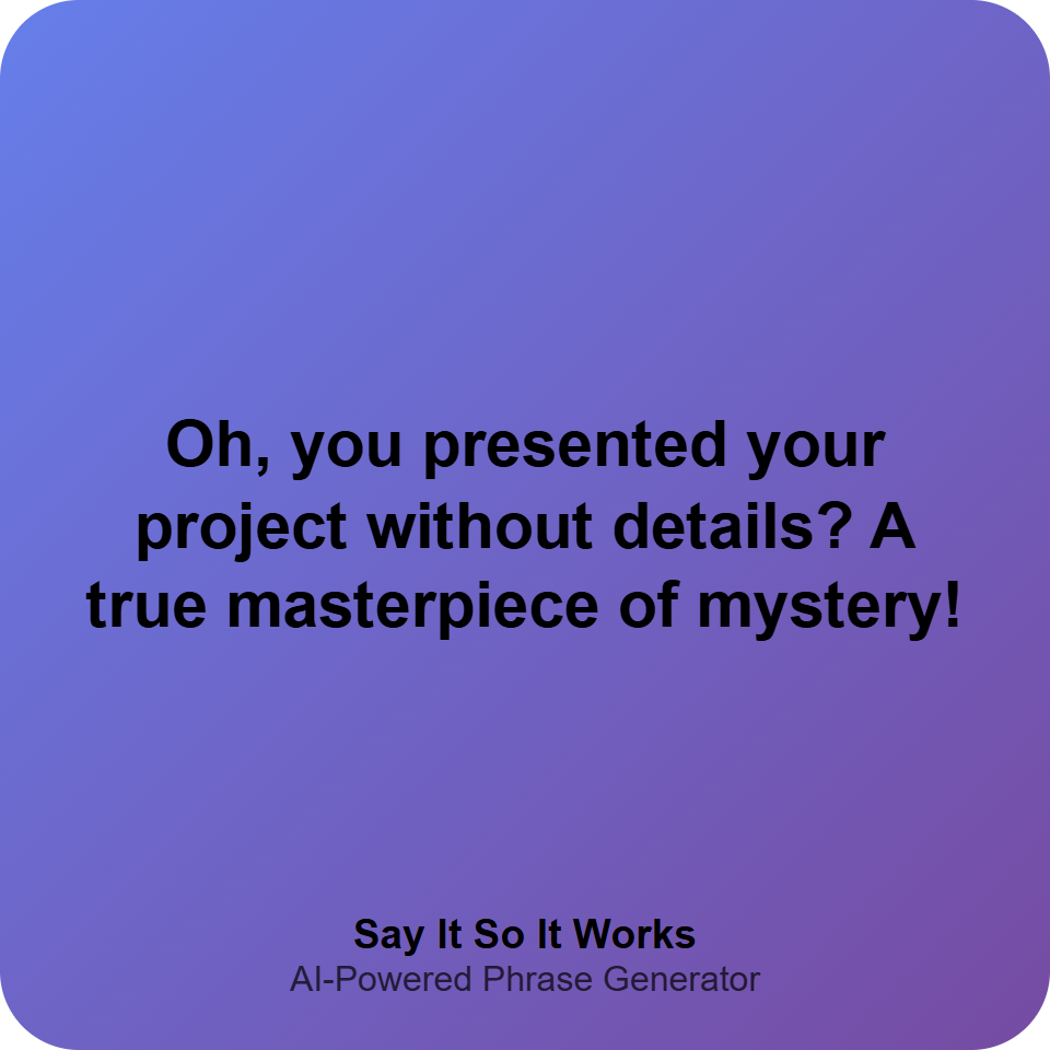 Oh, you presented your project without details? A true masterpiece of mystery!