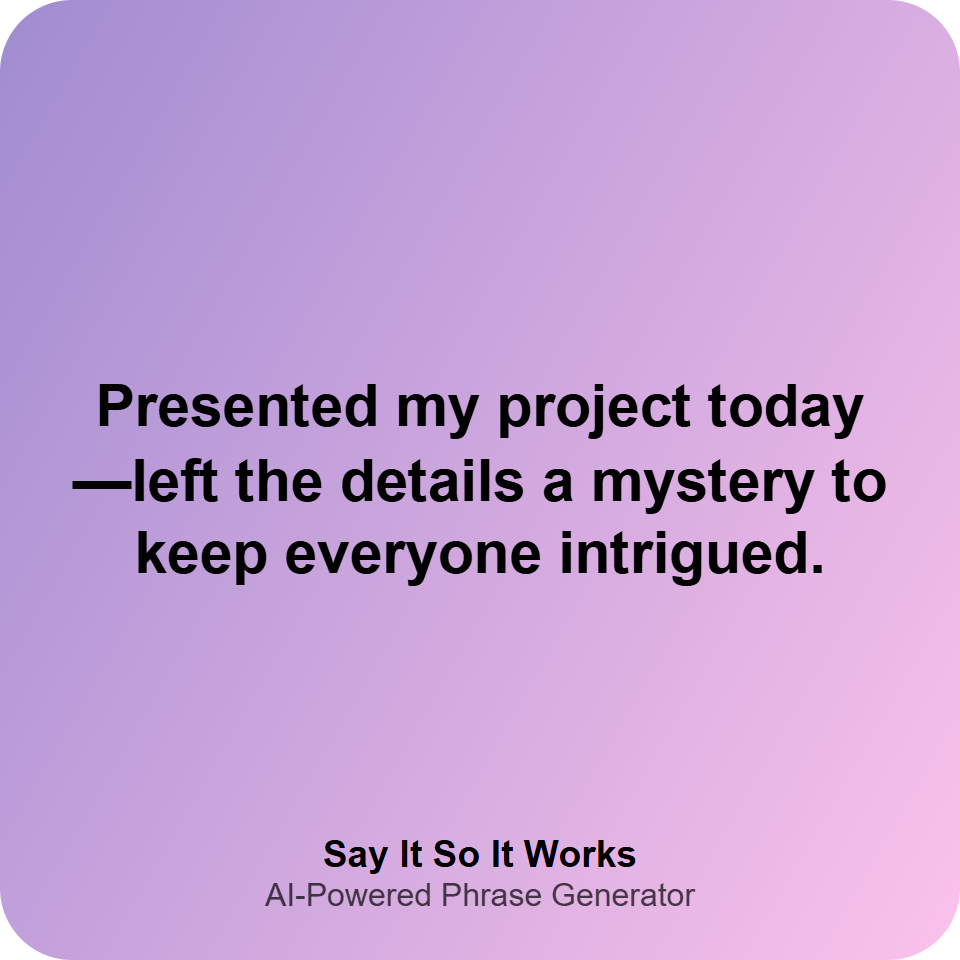 Presented my project today—left the details a mystery to keep everyone intrigued.