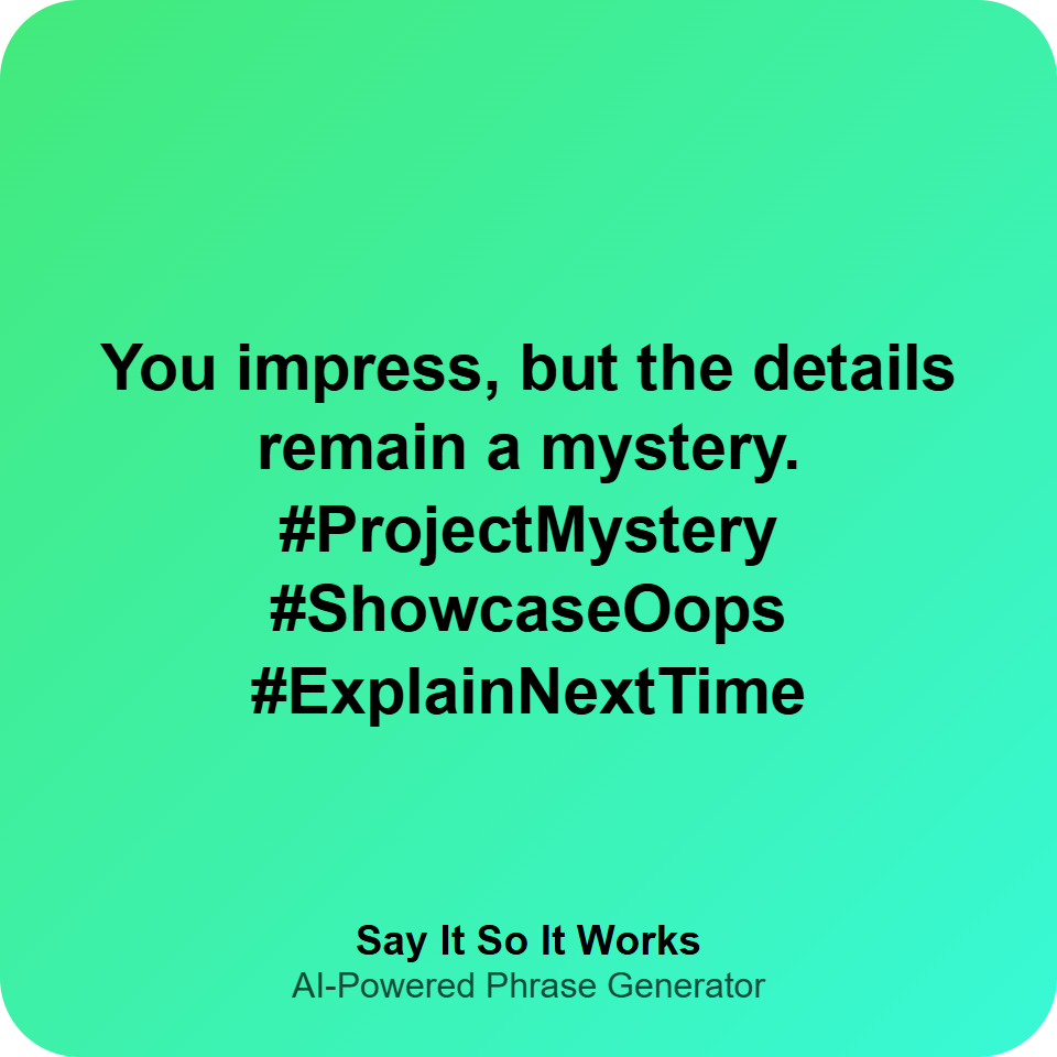 You impress, but the details remain a mystery. #ProjectMystery #ShowcaseOops #ExplainNextTime