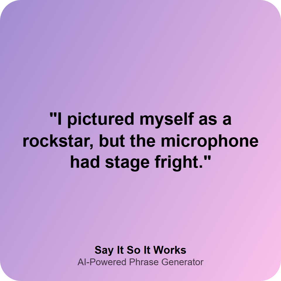 "I pictured myself as a rockstar, but the microphone had stage fright."