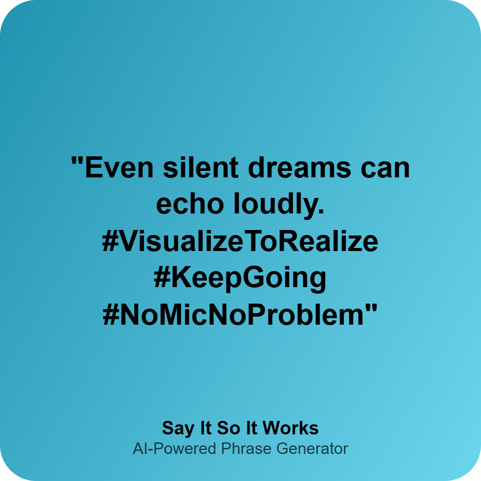 "Even silent dreams can echo loudly. #VisualizeToRealize #KeepGoing #NoMicNoProblem"