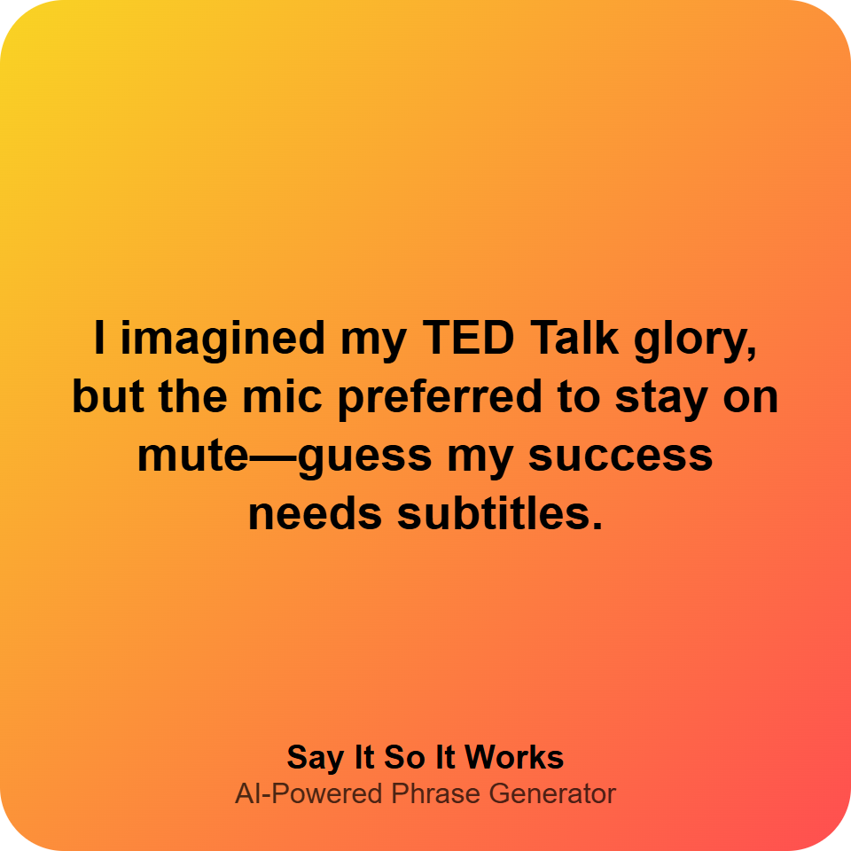 I imagined my TED Talk glory, but the mic preferred to stay on mute—guess my success needs subtitles.