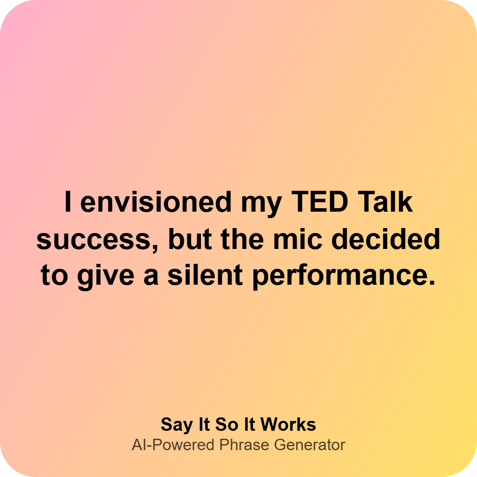I envisioned my TED Talk success, but the mic decided to give a silent performance.