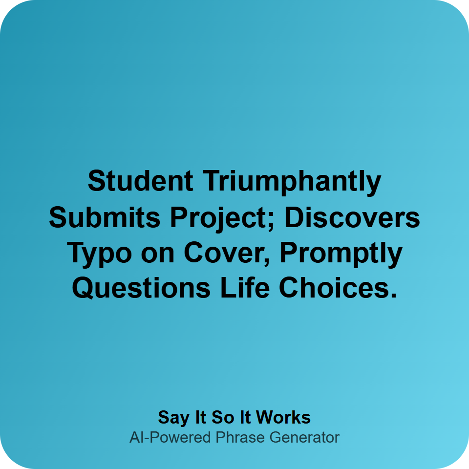 Student Triumphantly Submits Project; Discovers Typo on Cover, Promptly Questions Life Choices.