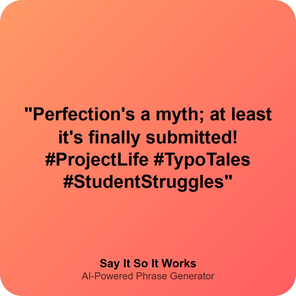 "Perfection's a myth; at least it's finally submitted! #ProjectLife #TypoTales #StudentStruggles"
