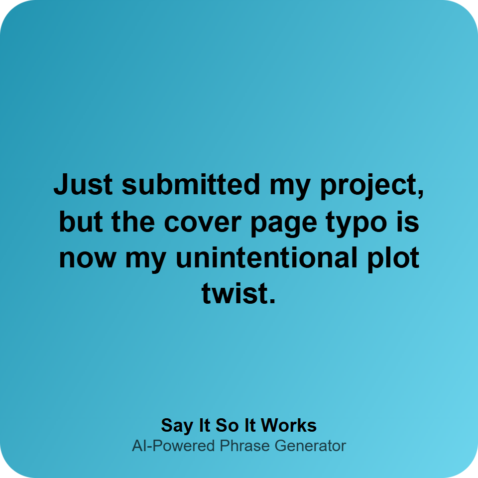 Just submitted my project, but the cover page typo is now my unintentional plot twist.