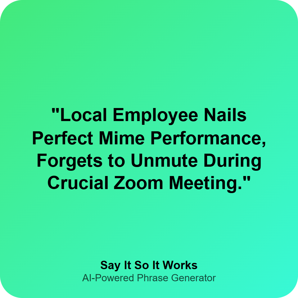 "Local Employee Nails Perfect Mime Performance, Forgets to Unmute During Crucial Zoom Meeting."