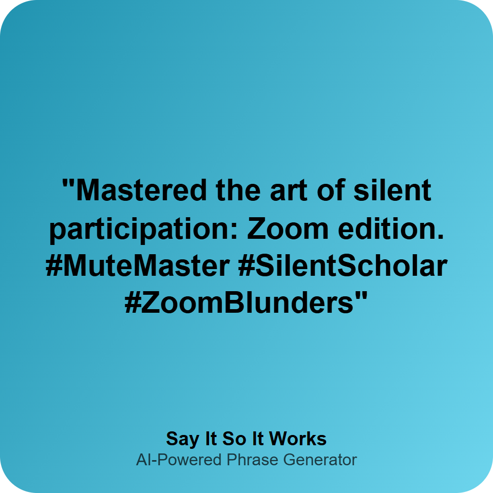 "Mastered the art of silent participation: Zoom edition. #MuteMaster #SilentScholar #ZoomBlunders"