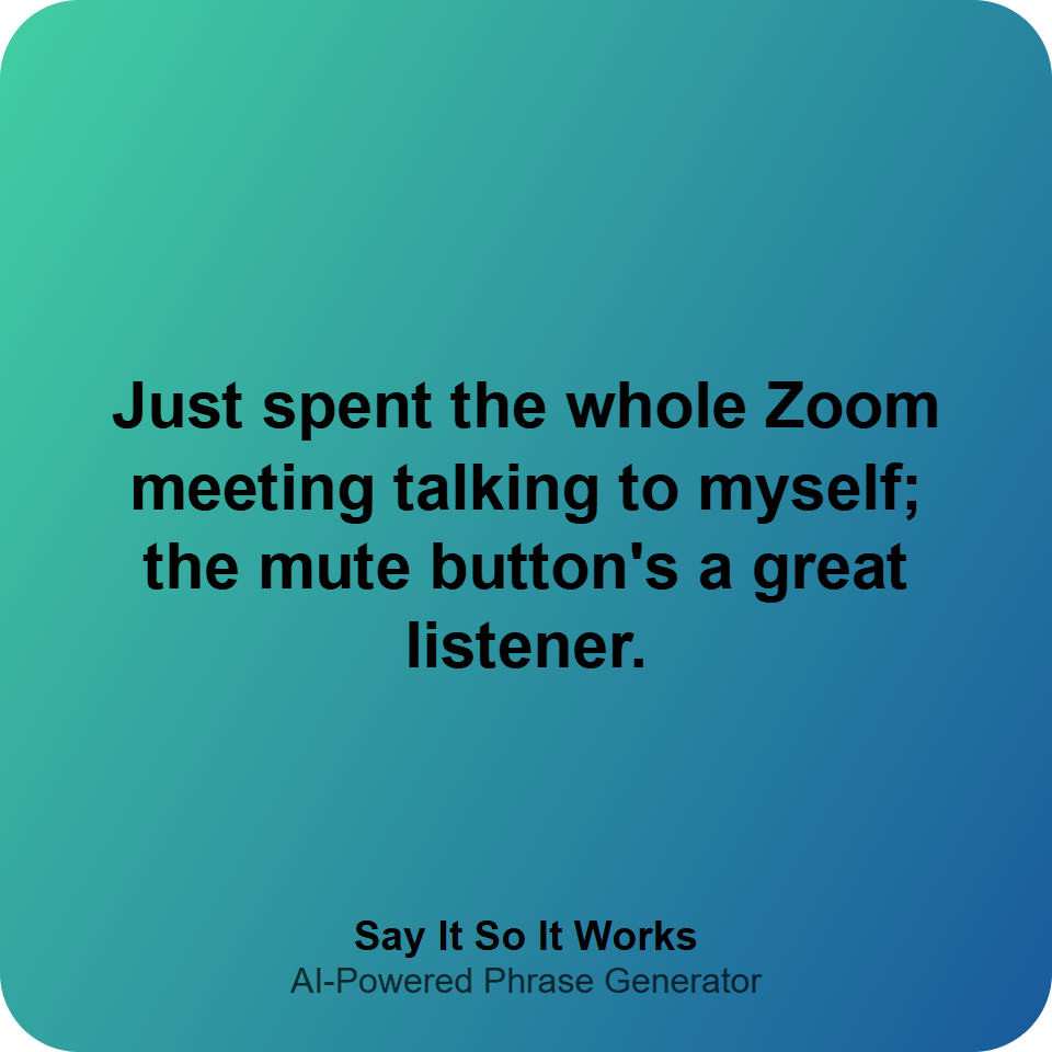 Just spent the whole Zoom meeting talking to myself; the mute button's a great listener.