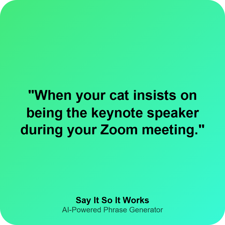 "When your cat insists on being the keynote speaker during your Zoom meeting."