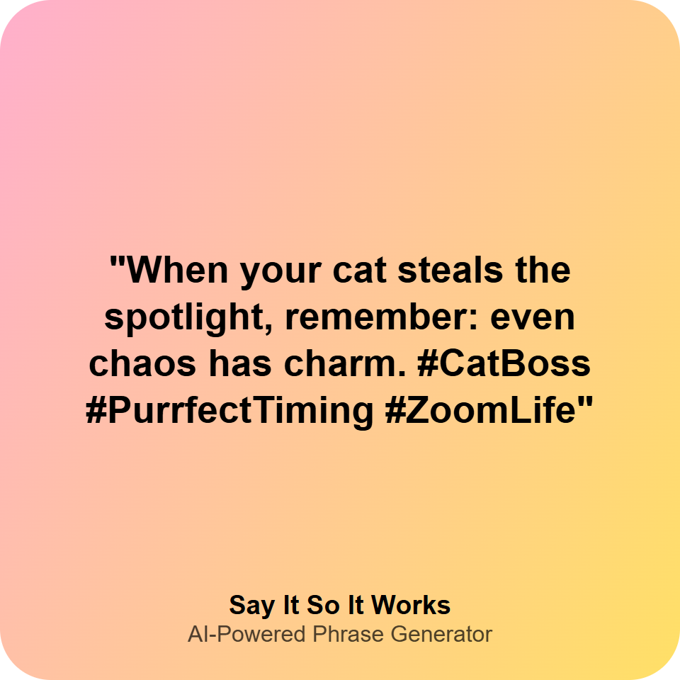 "When your cat steals the spotlight, remember: even chaos has charm. #CatBoss #PurrfectTiming #ZoomLife"