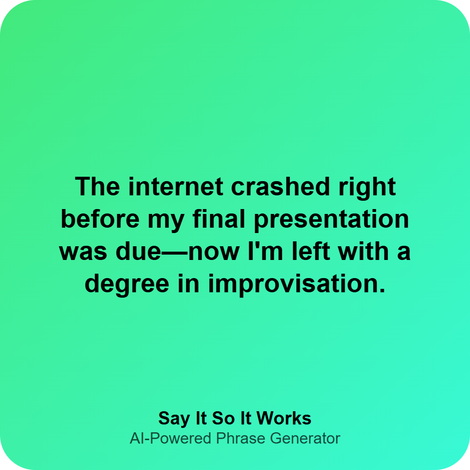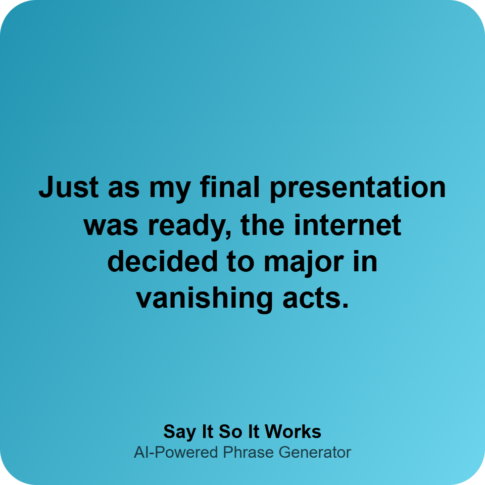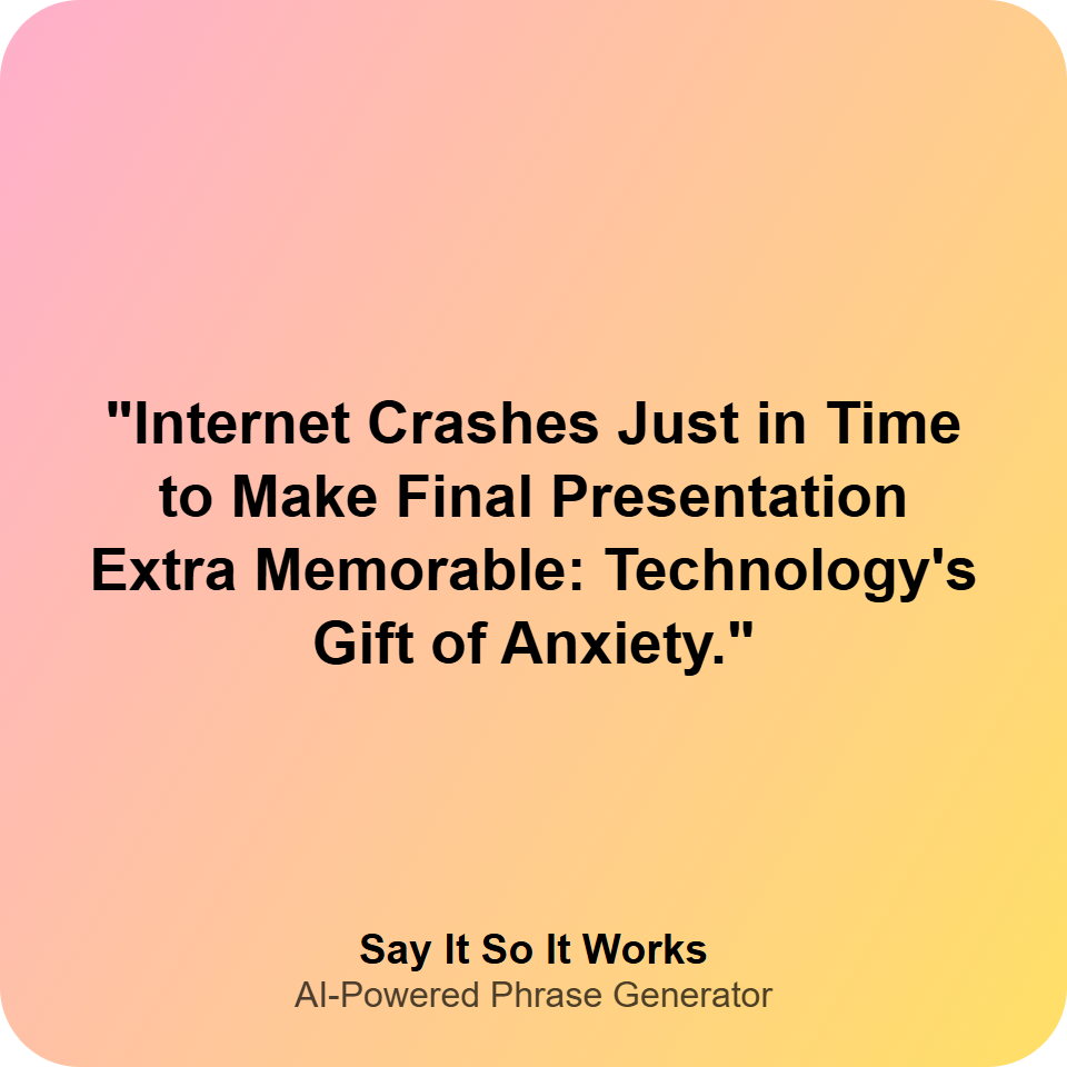 "Internet Crashes Just in Time to Make Final Presentation Extra Memorable: Technology's Gift of Anxiety."