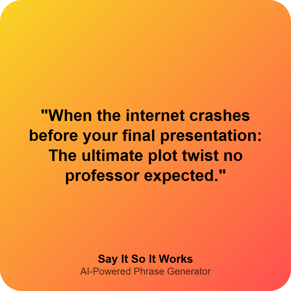"When the internet crashes before your final presentation: The ultimate plot twist no professor expected."