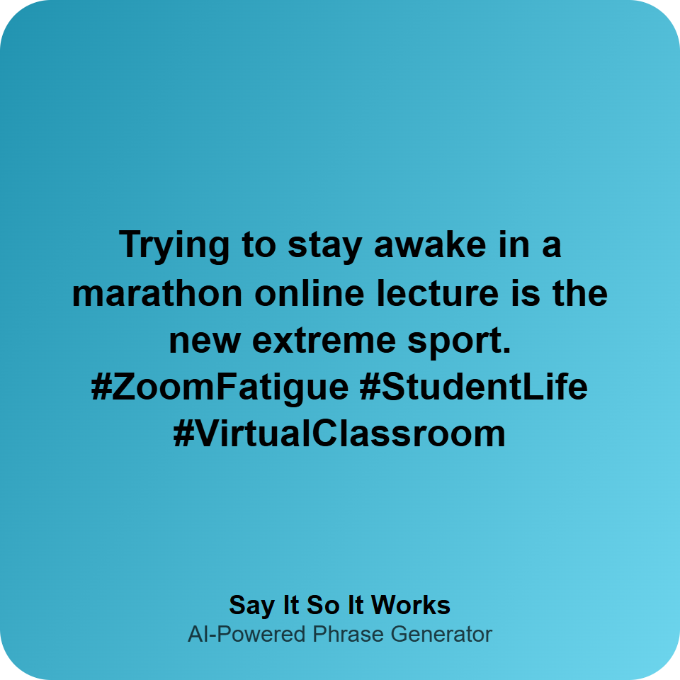 Trying to stay awake in a marathon online lecture is the new extreme sport. #ZoomFatigue #StudentLife #VirtualClassroom