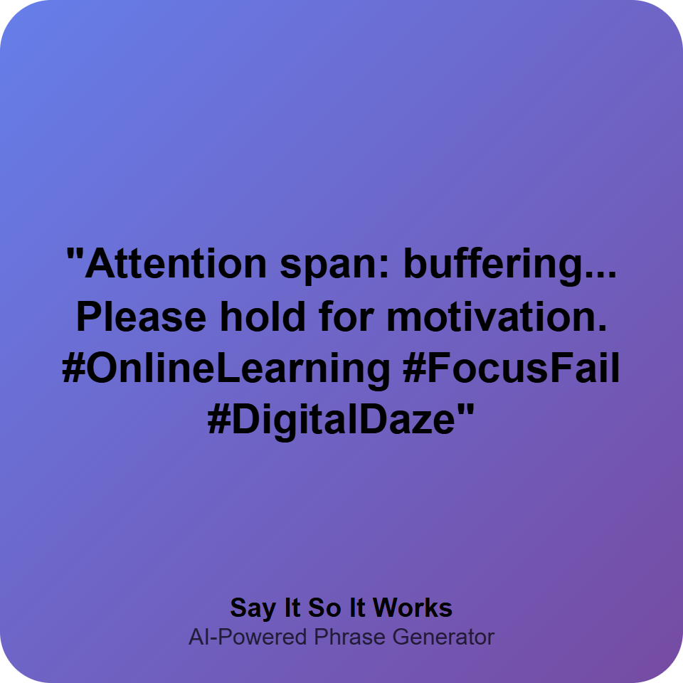 "Attention span: buffering... Please hold for motivation. #OnlineLearning #FocusFail #DigitalDaze"