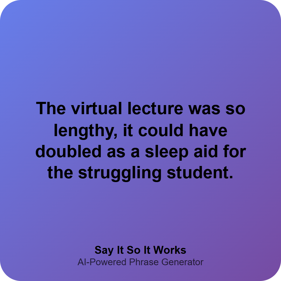 The virtual lecture was so lengthy, it could have doubled as a sleep aid for the struggling student.