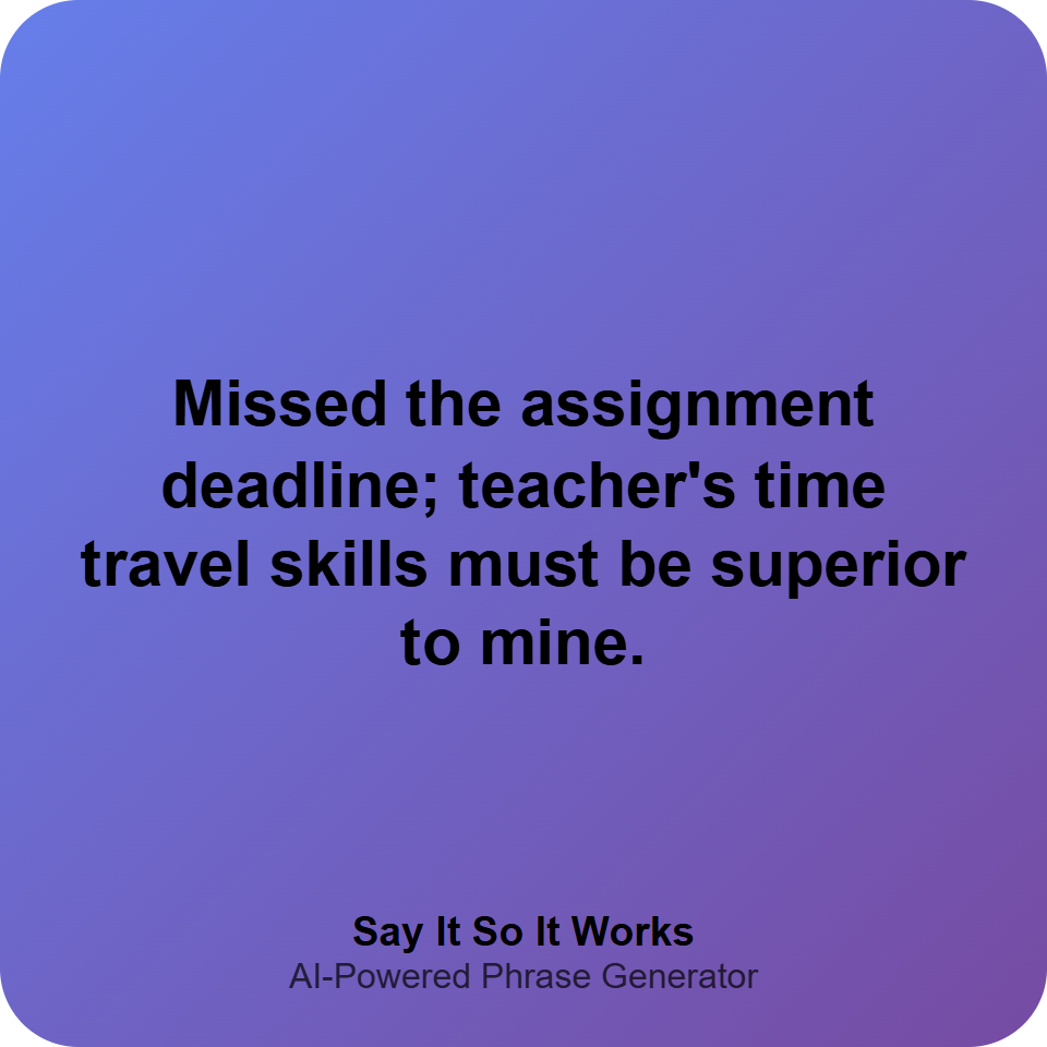 Missed the assignment deadline; teacher's time travel skills must be superior to mine.