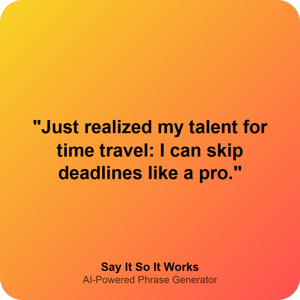 "Just realized my talent for time travel: I can skip deadlines like a pro."