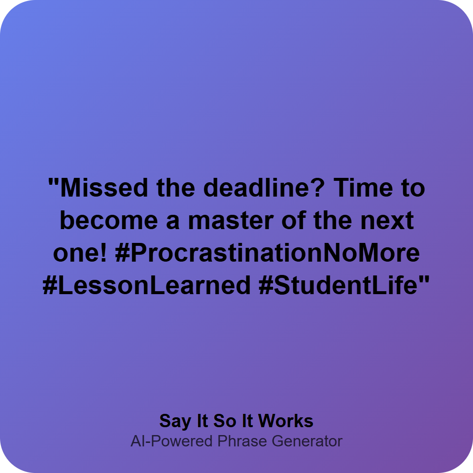 "Missed the deadline? Time to become a master of the next one! #ProcrastinationNoMore #LessonLearned #StudentLife"