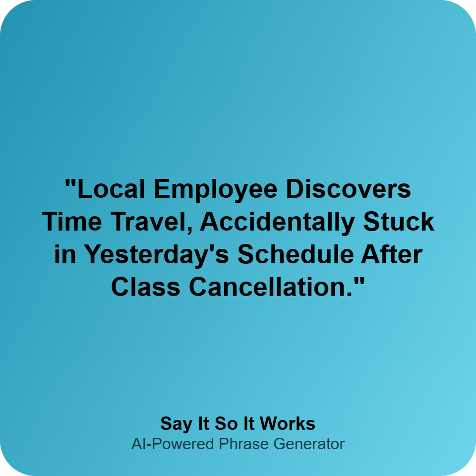 "Local Employee Discovers Time Travel, Accidentally Stuck in Yesterday's Schedule After Class Cancellation."