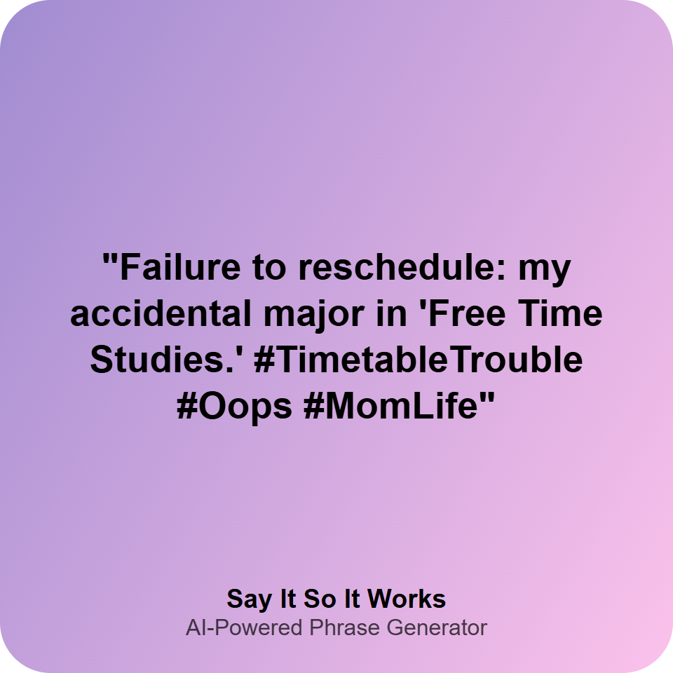 "Failure to reschedule: my accidental major in 'Free Time Studies.' #TimetableTrouble #Oops #MomLife"
