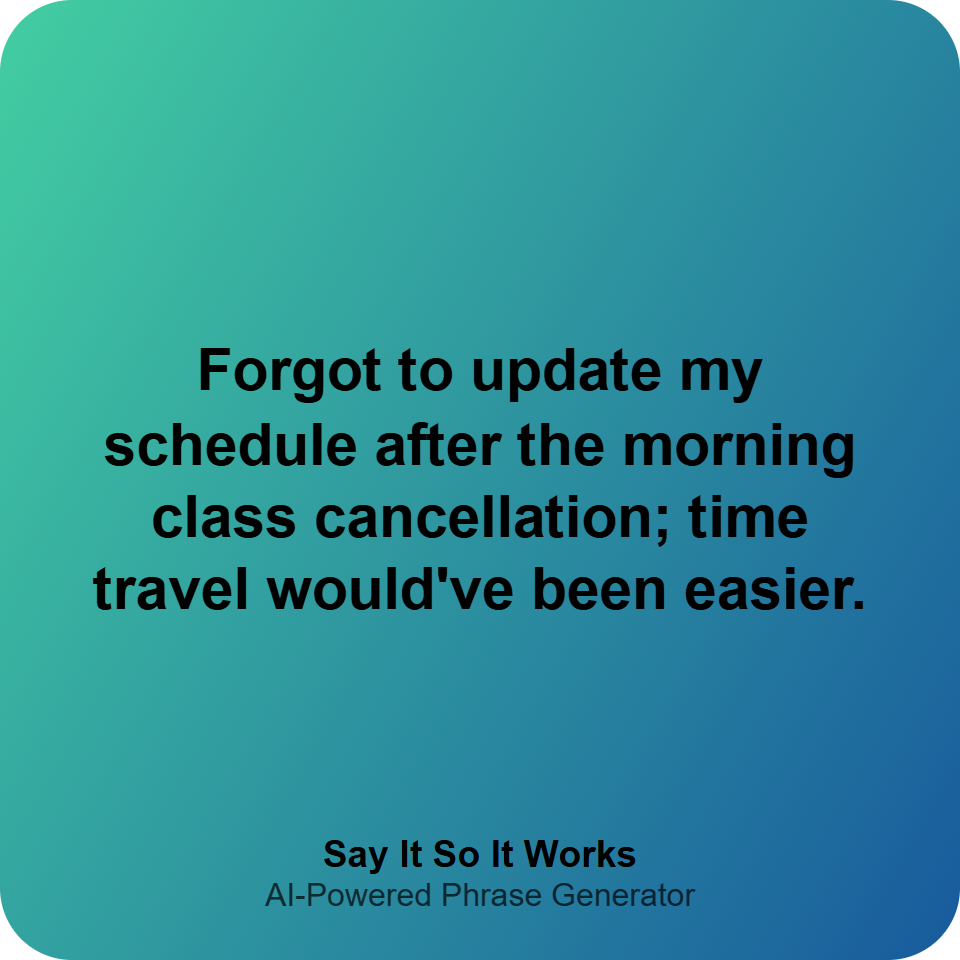 Forgot to update my schedule after the morning class cancellation; time travel would've been easier.