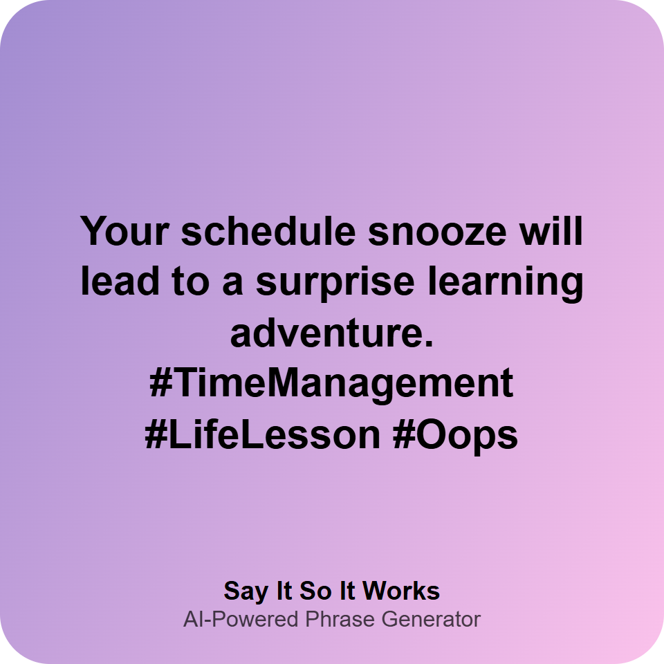 Your schedule snooze will lead to a surprise learning adventure. #TimeManagement #LifeLesson #Oops