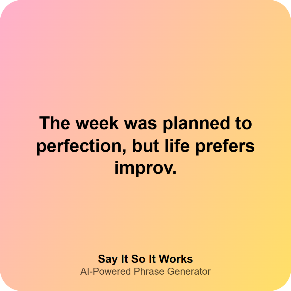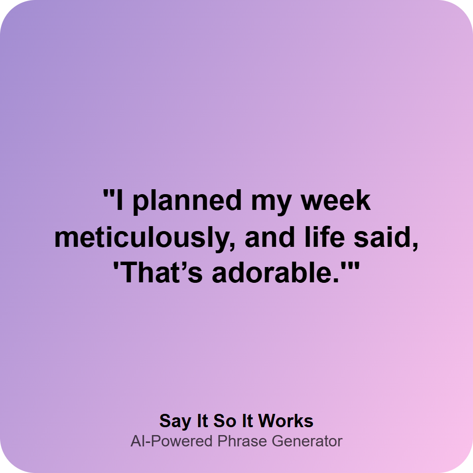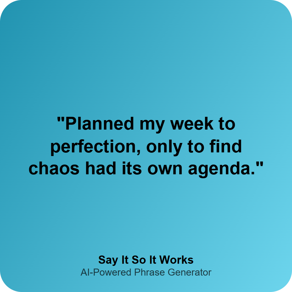 "Planned my week to perfection, only to find chaos had its own agenda."