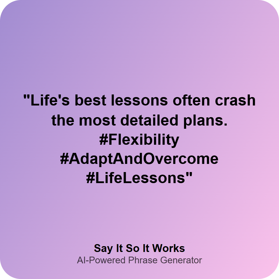 "Life's best lessons often crash the most detailed plans. #Flexibility #AdaptAndOvercome #LifeLessons"