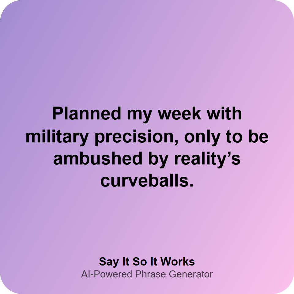 Planned my week with military precision, only to be ambushed by reality’s curveballs.