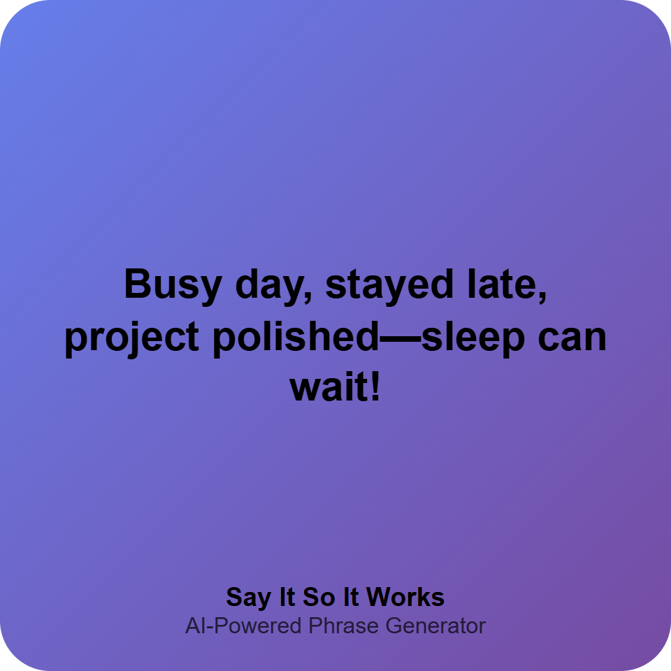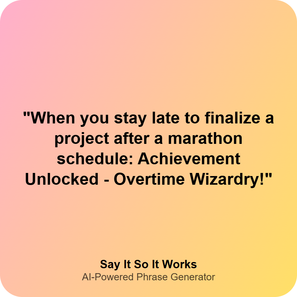 "When you stay late to finalize a project after a marathon schedule: Achievement Unlocked - Overtime Wizardry!"