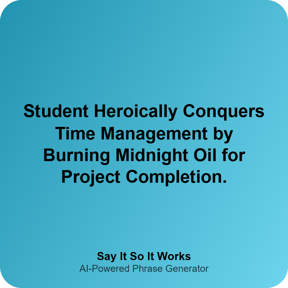 Student Heroically Conquers Time Management by Burning Midnight Oil for Project Completion.