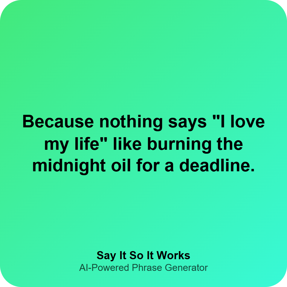 Because nothing says "I love my life" like burning the midnight oil for a deadline.