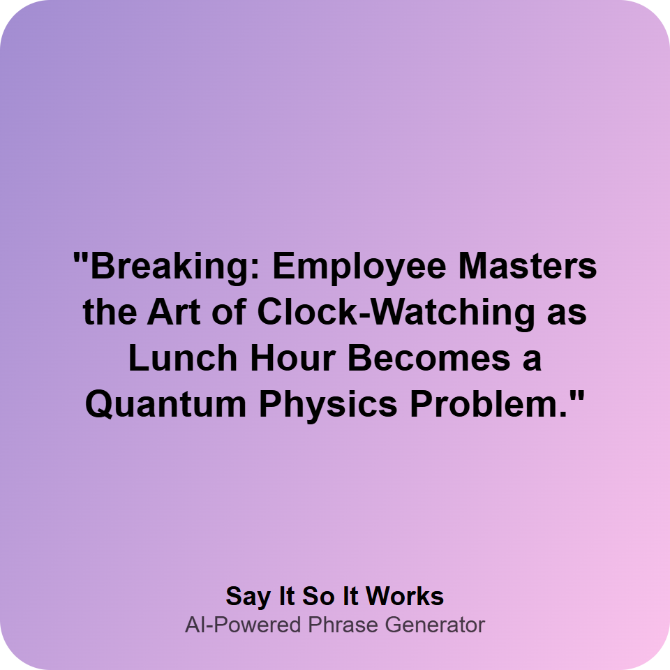 "Breaking: Employee Masters the Art of Clock-Watching as Lunch Hour Becomes a Quantum Physics Problem."