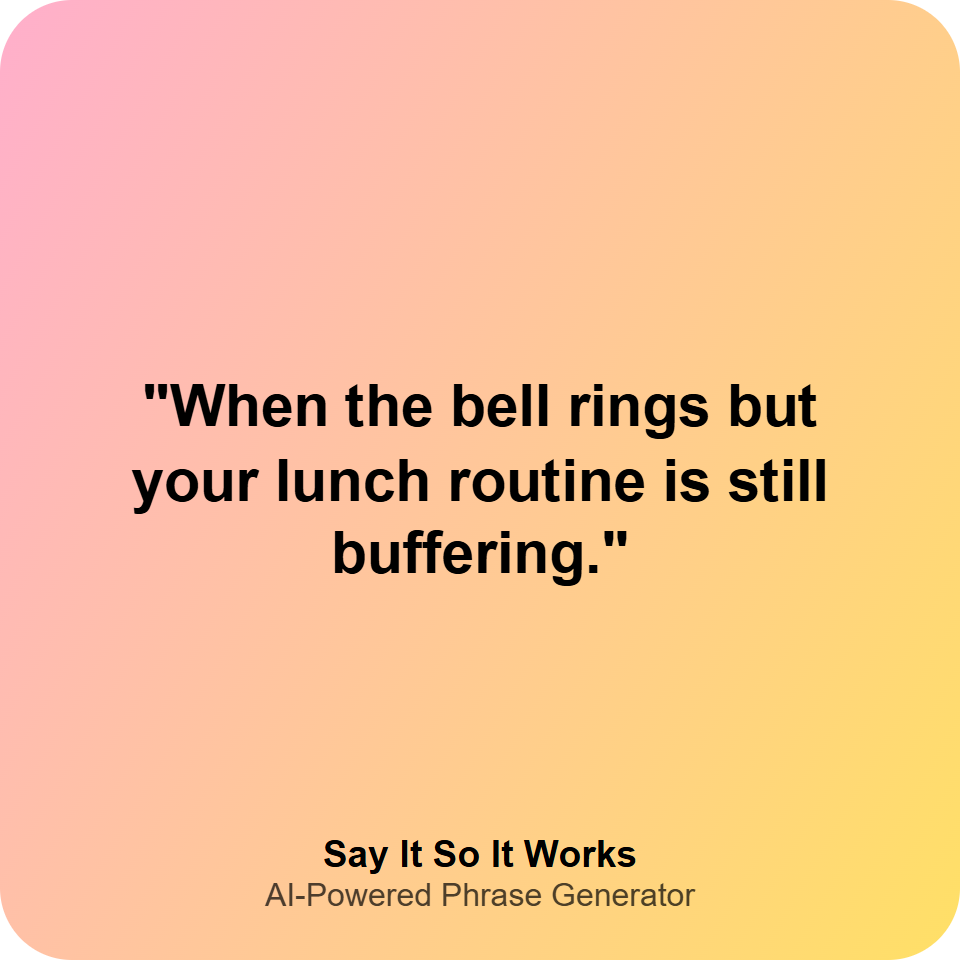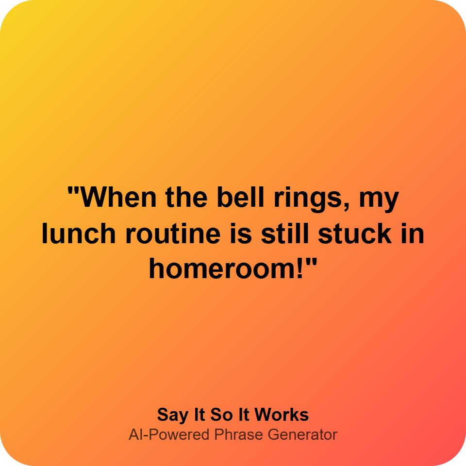 "When the bell rings, my lunch routine is still stuck in homeroom!"