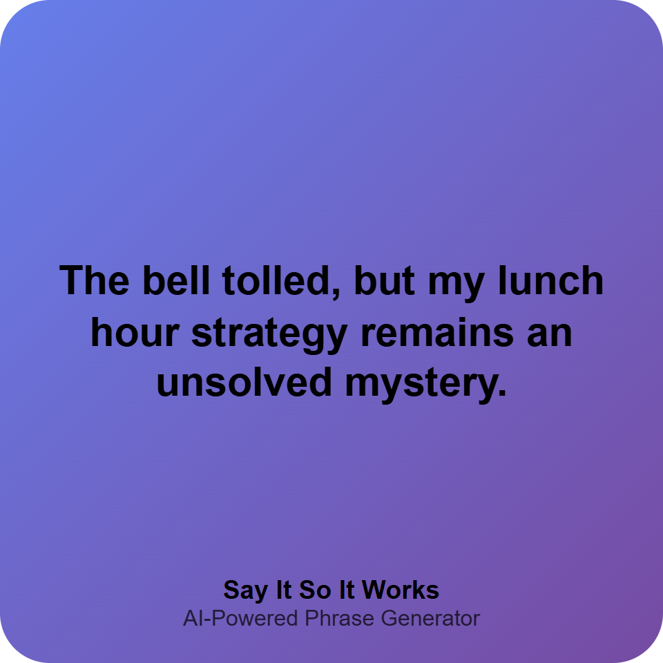 The bell tolled, but my lunch hour strategy remains an unsolved mystery.
