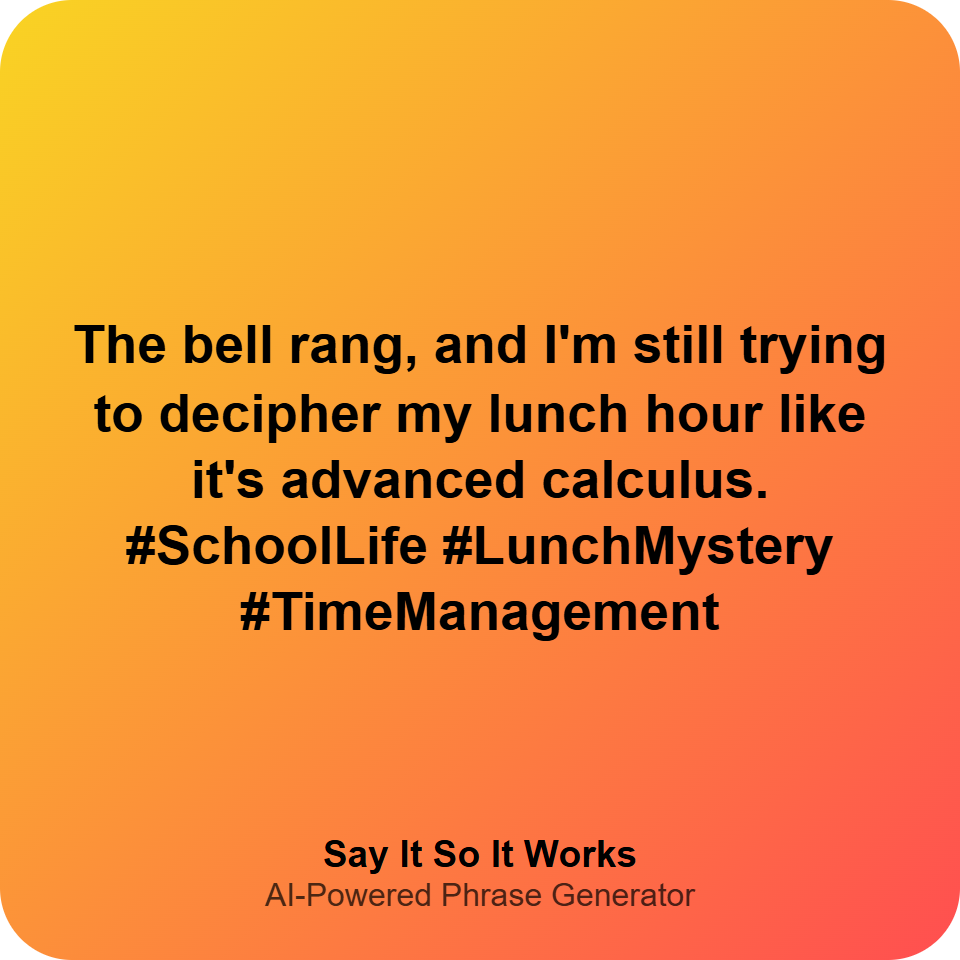 The bell rang, and I'm still trying to decipher my lunch hour like it's advanced calculus. #SchoolLife #LunchMystery #TimeManagement
