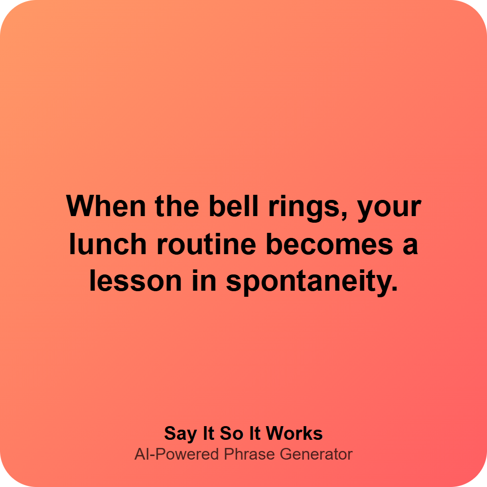 When the bell rings, your lunch routine becomes a lesson in spontaneity.