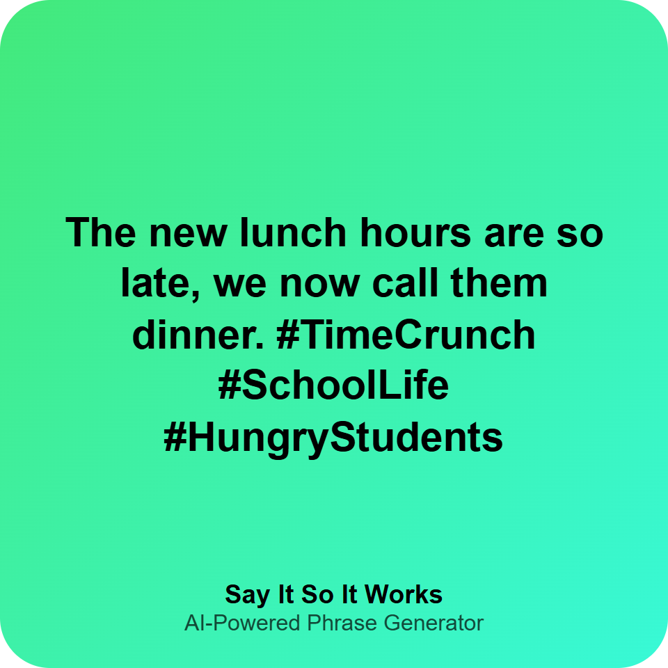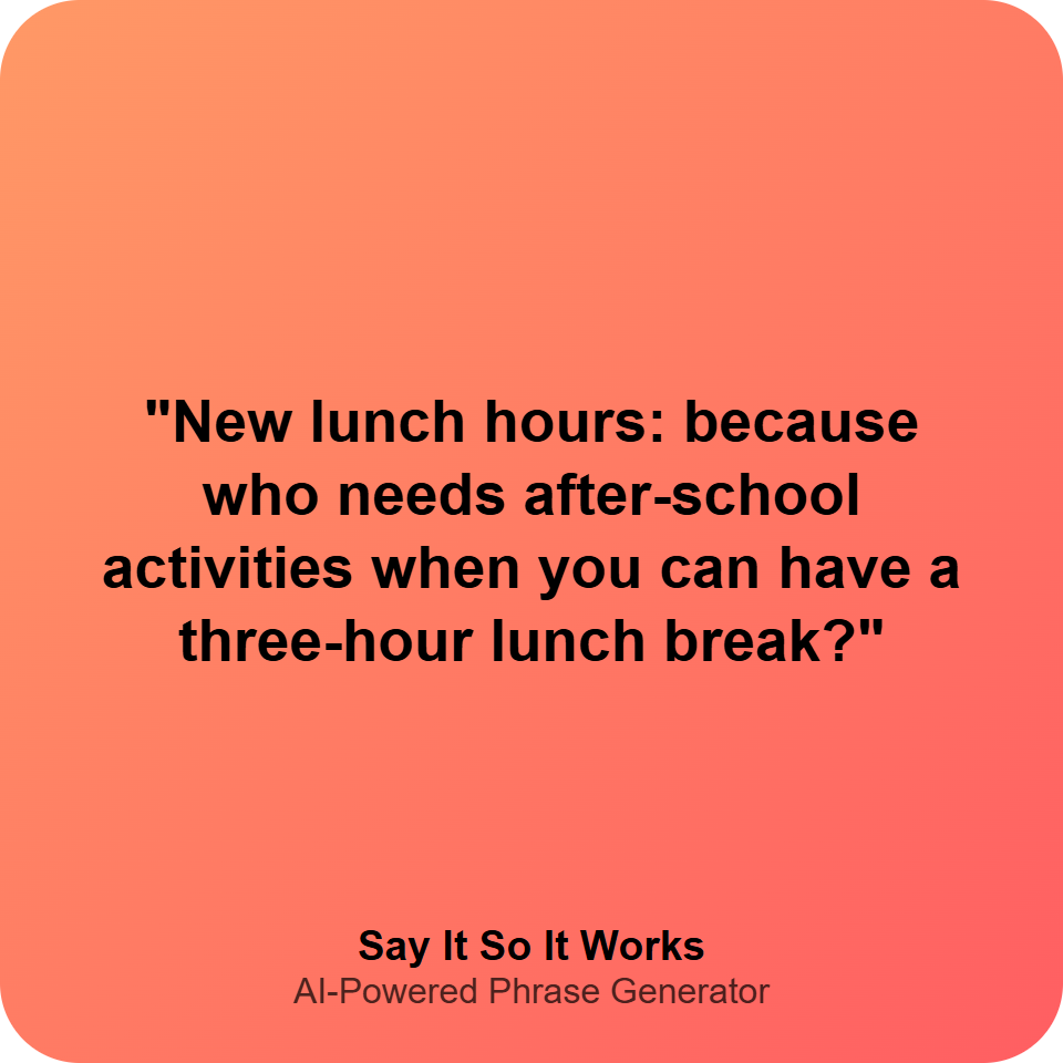 "New lunch hours: because who needs after-school activities when you can have a three-hour lunch break?"