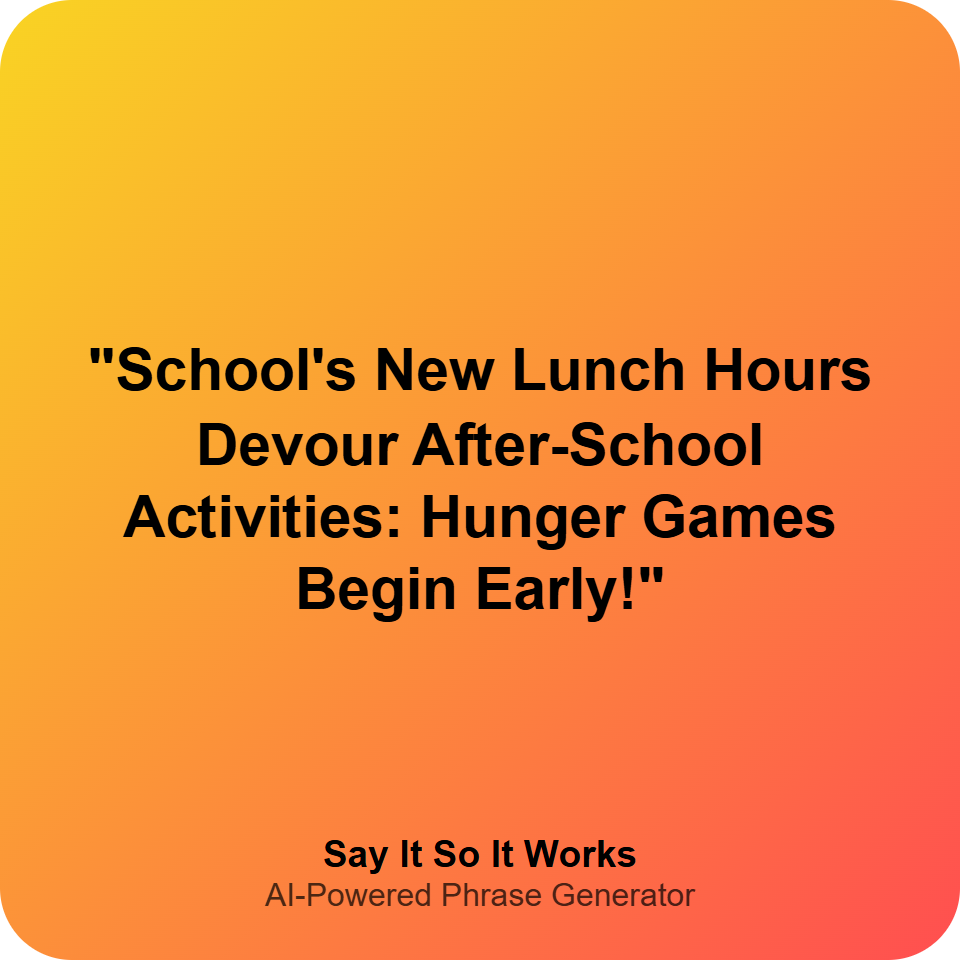 "School's New Lunch Hours Devour After-School Activities: Hunger Games Begin Early!"