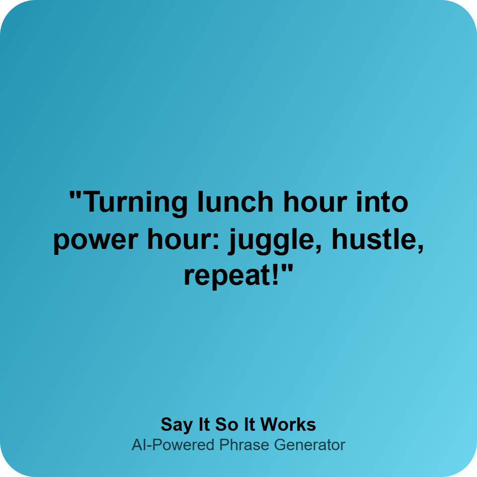 "Turning lunch hour into power hour: juggle, hustle, repeat!"