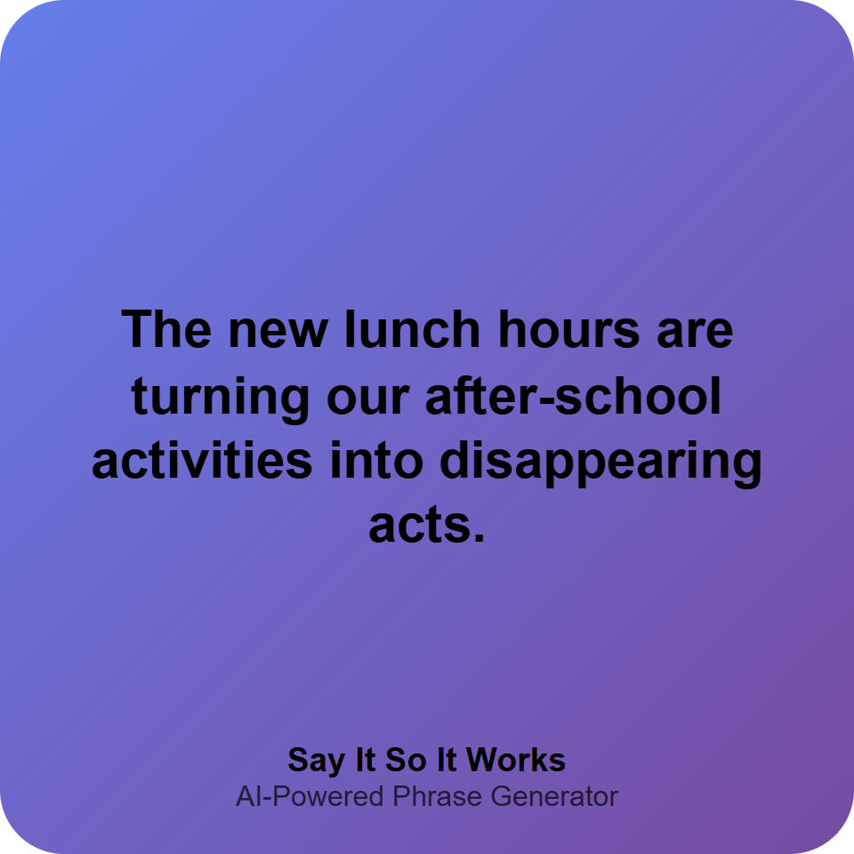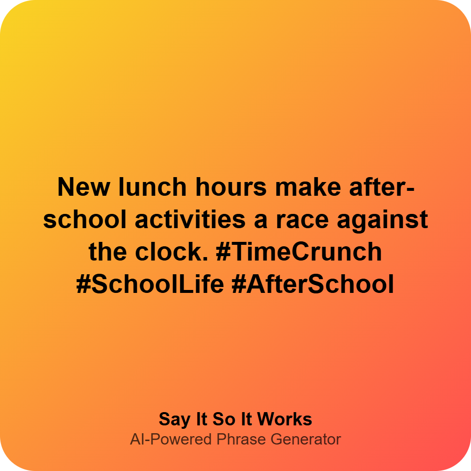 New lunch hours make after-school activities a race against the clock. #TimeCrunch #SchoolLife #AfterSchool