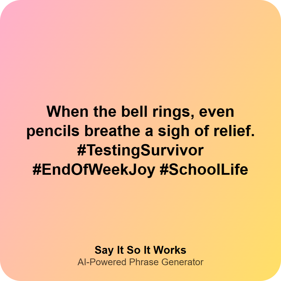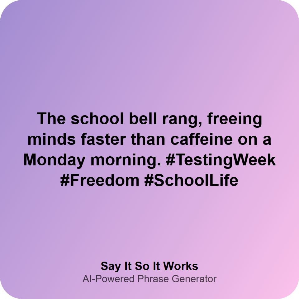 The school bell rang, freeing minds faster than caffeine on a Monday morning. #TestingWeek #Freedom #SchoolLife