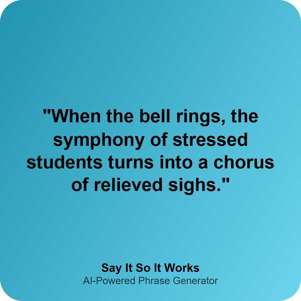 "When the bell rings, the symphony of stressed students turns into a chorus of relieved sighs."